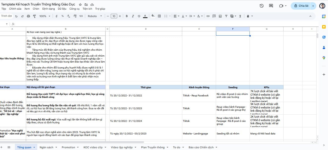 Template Kế Hoạch Truyền Thông Giáo Dục