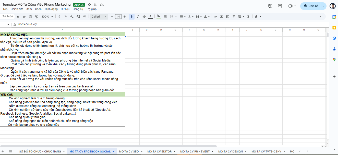 Template Sơ Đồ Tổ Chức Mô Tả Công Việc Marketing