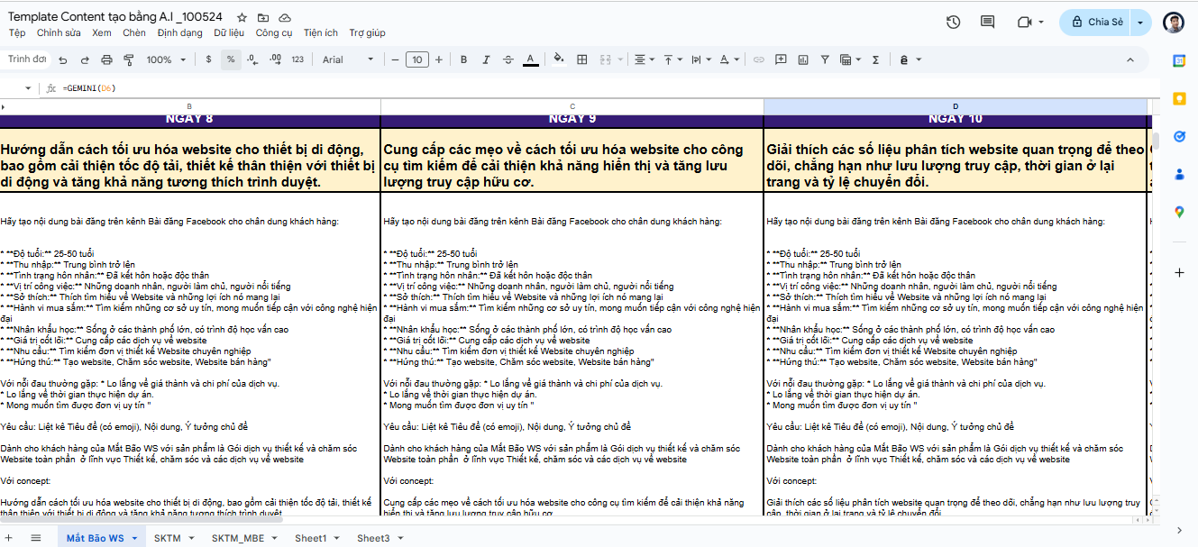 Tích hợp chat gpt với google sheet tạo content tháng tự động với promp chi tiết